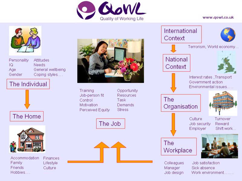 Your Quality of Working Life (QoWL) is affected by the complex interaction of many factors such as your personality, your home life, how well you are able to do your job, the support you get from colleagues and managers and they way in which you are asked to do your job.